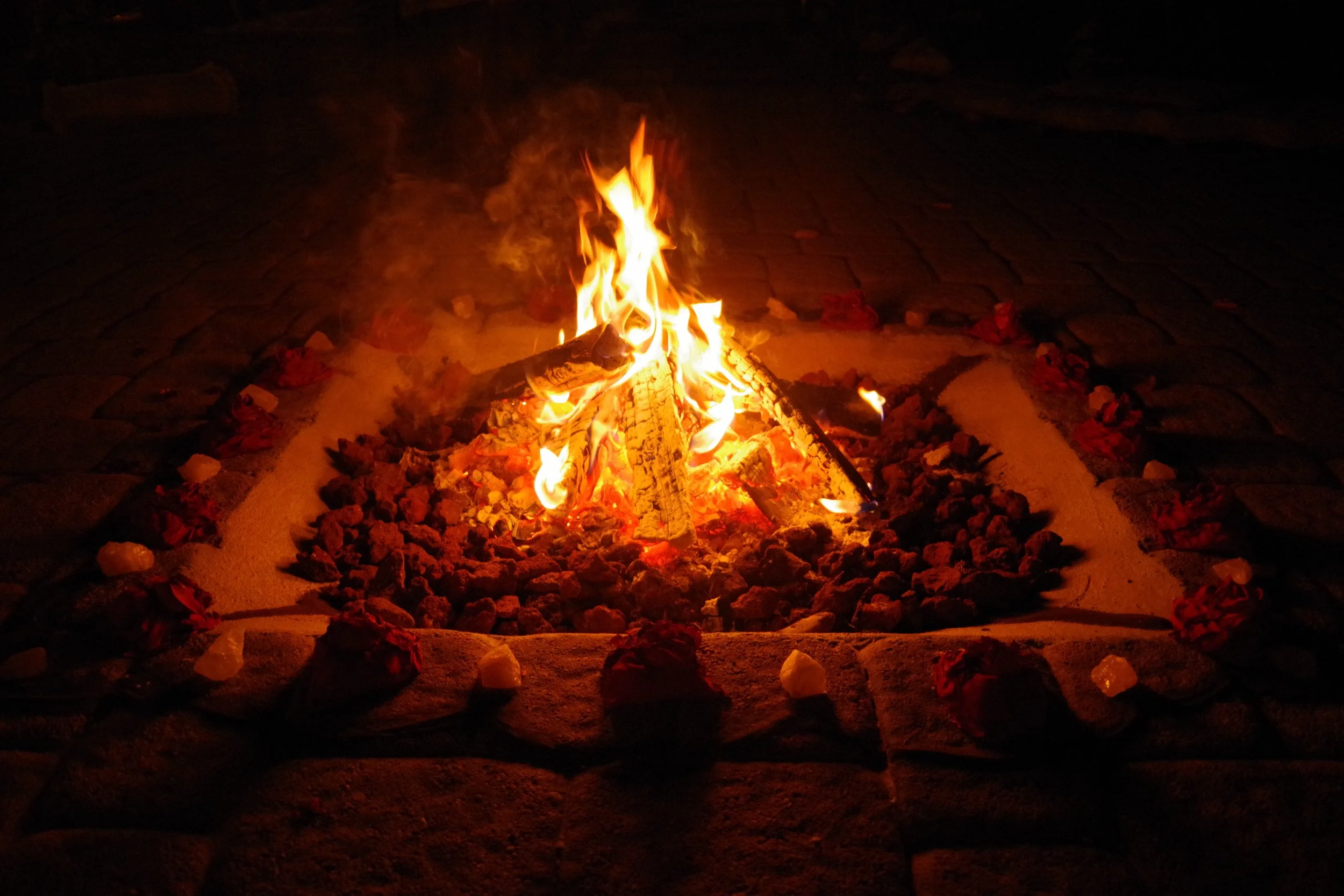 We open with a deeply devotional and reverential fire and cacao ceremony, grounding ourselves in the elements and our sacred place within them.